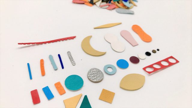 そこでその端切れを様々な形に切り抜き、たくさんの革パーツを作製。